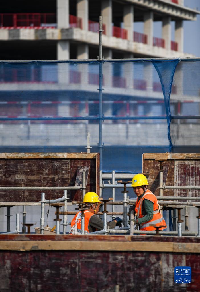 2月2日,工人在成都芯谷產(chǎn)業(yè)功能區配套設施建設工程施工作業(yè)。