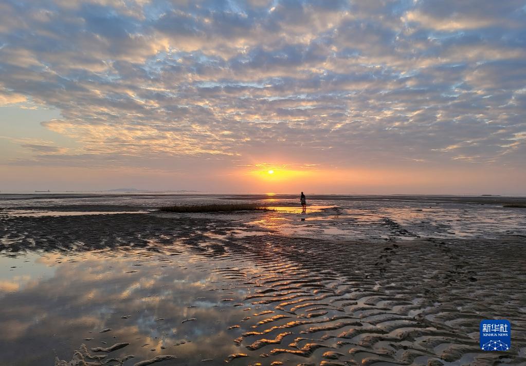 這是福建泉州晉江圍頭灣灘涂景色(2月1日攝,手機照片)。