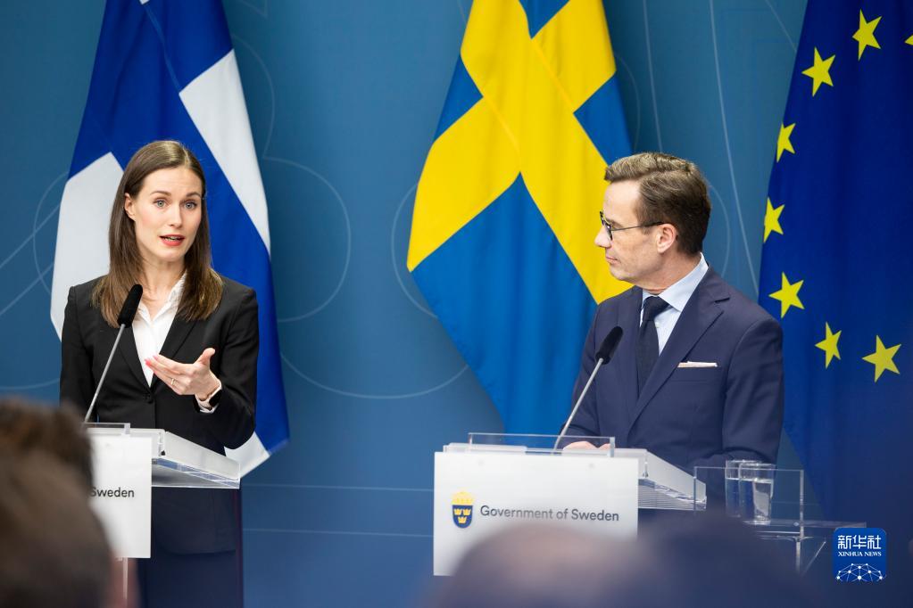 2月2日,芬蘭總理馬林(左)在瑞典首都斯德哥爾摩與瑞典首相克里斯特松出席新聞發(fā)布會(huì )。