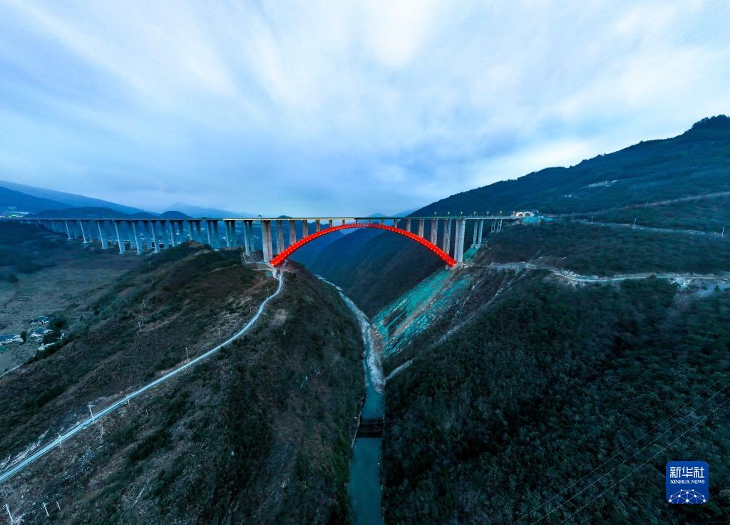 這是2月2日在貴州省遵義市拍攝的大發(fā)渠特大橋(無(wú)人機照片)。