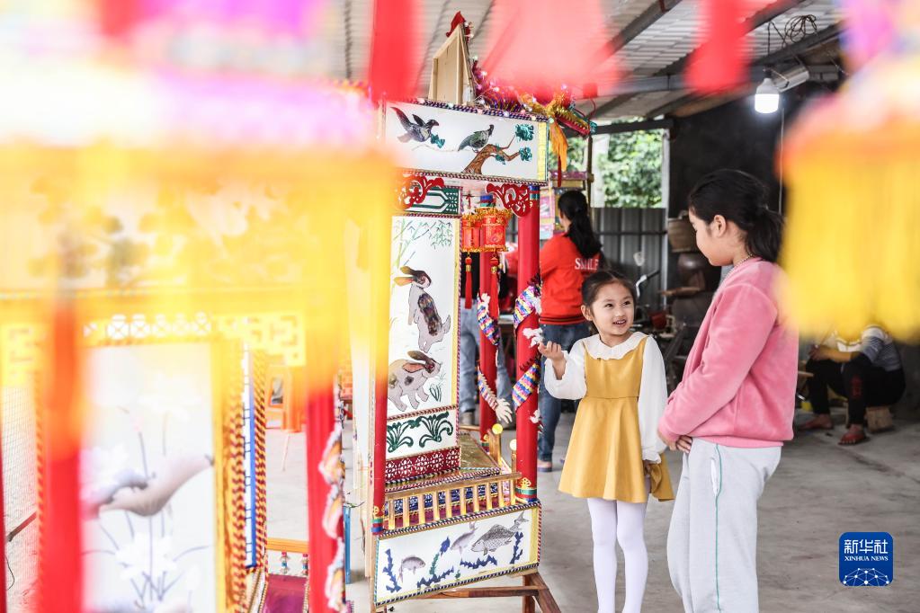 2月2日,海南省瓊海市龍江鎮深造村村民在觀(guān)看花燈。