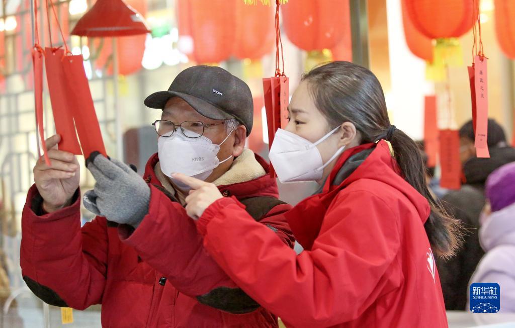 2月3日,北京市豐臺區東高地街道的居民參加猜燈謎活動(dòng)。
