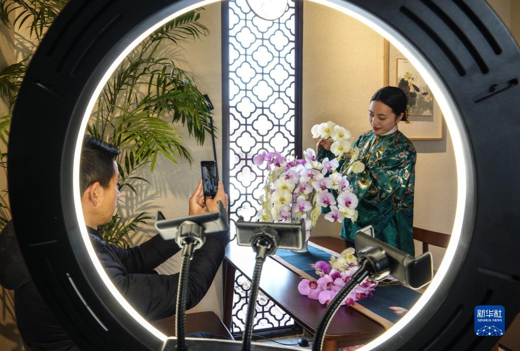 2月3日,華絢園藝花卉產(chǎn)業(yè)聯(lián)合體的兩名創(chuàng )業(yè)者在拍攝小視頻。位于千燈鎮的華絢園藝有限公司采取“公司+合作社+農戶(hù)”的合作模式,建立花卉產(chǎn)業(yè)聯(lián)合體,成為智慧農業(yè)的品牌項目。