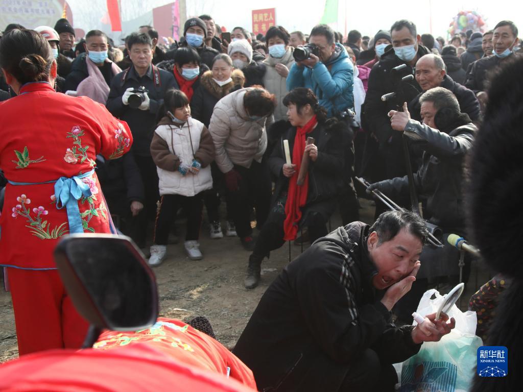 當日是正月十三,時(shí)隔三年,河南省寶豐縣馬街書(shū)會(huì )線(xiàn)下“重啟”。來(lái)自全國各地的說(shuō)書(shū)藝人負鼓攜琴,聚集于此。在麥田中,他們以天作幕,以地為臺,說(shuō)書(shū)會(huì )友,彈唱獻藝。