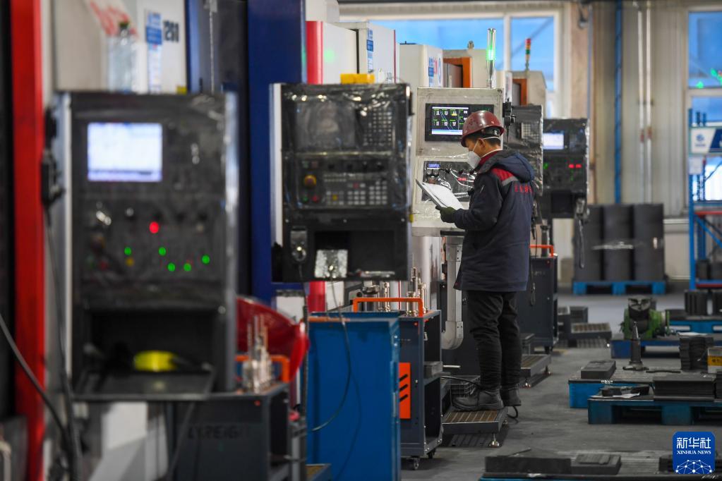 2月3日,在內蒙古赤峰市寧城縣一家科技有限公司的車(chē)間內,工人操作機器進(jìn)行生產(chǎn)。
