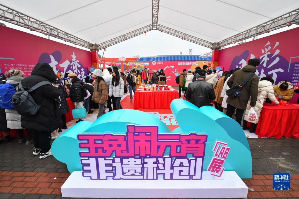 2月4日,市民和游客在湖南非遺元宵喜樂(lè )會(huì )現場(chǎng)的非遺科創(chuàng )展區游玩。