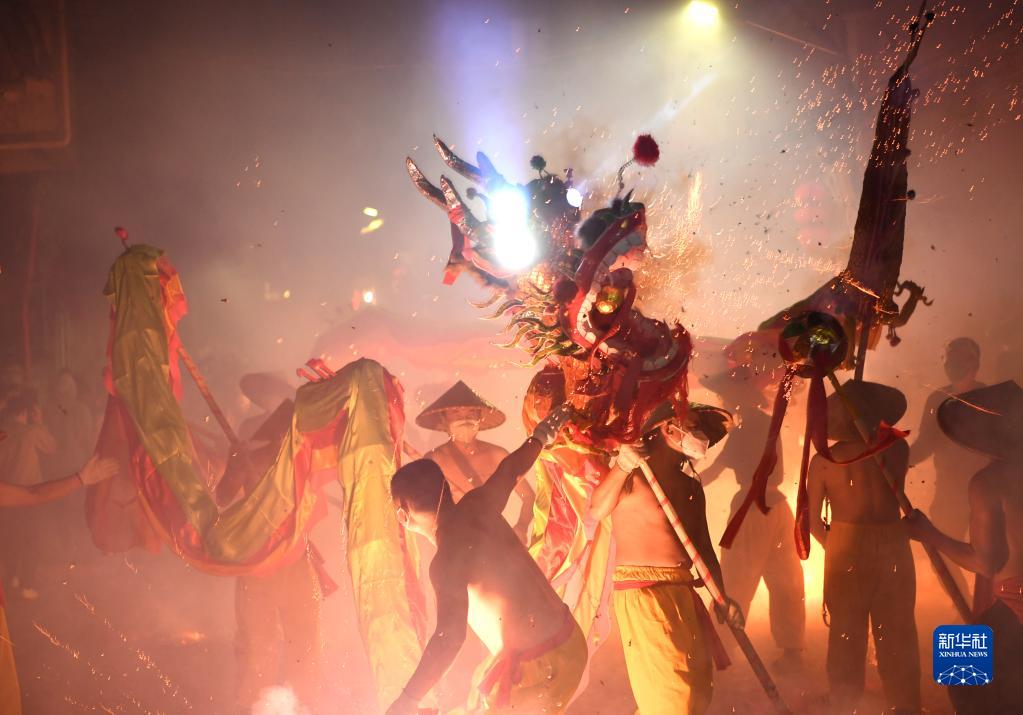 人們在廣西南寧市賓陽(yáng)縣縣城舞炮龍(2月1日攝)。