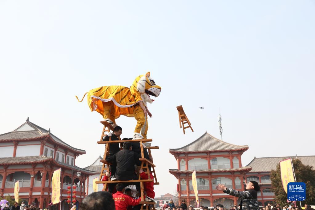 當日,河南省焦作市溫縣陳家溝村流傳數百年的傳統民俗節目“陳家溝舞虎”精彩上演,讓觀(guān)眾大飽眼福。