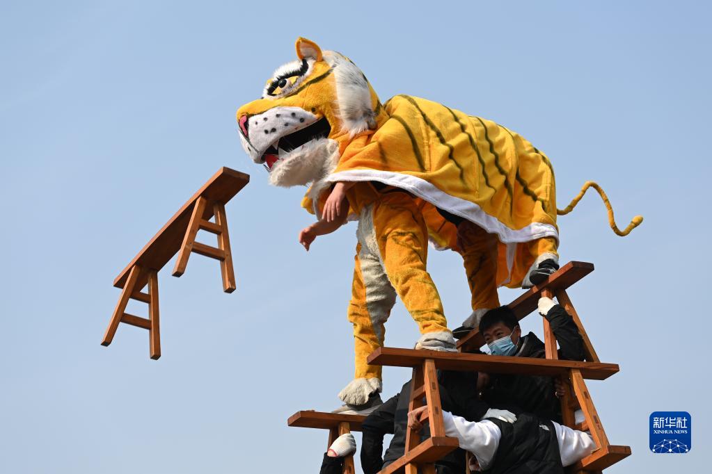 當日,河南省焦作市溫縣陳家溝村流傳數百年的傳統民俗節目“陳家溝舞虎”精彩上演,讓觀(guān)眾大飽眼福。