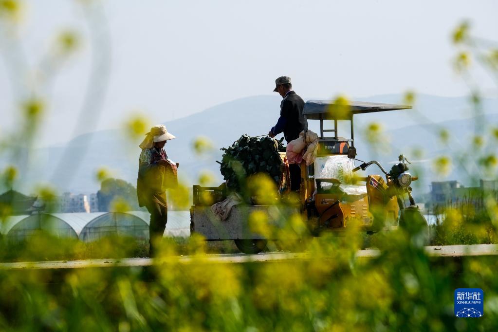 2月4日,在云南省個(gè)舊市大屯街道新瓦房村,農民在田里勞作。