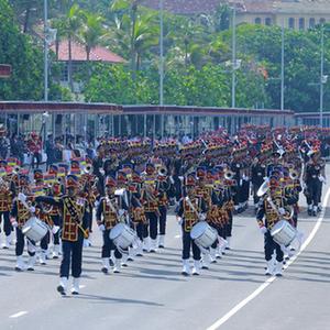2月4日,斯里蘭卡士兵在首都科倫坡參加閱兵儀式,慶祝斯里蘭卡獨立75周年。