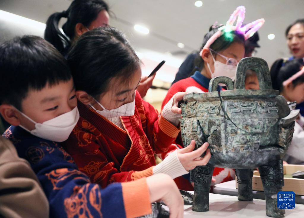 2月4日,小朋友在中國文字博物館體驗文物拼拼樂(lè )。