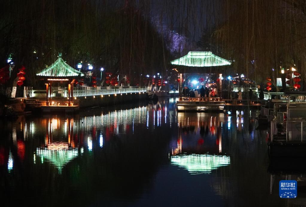 元宵節來(lái)臨之際,山東省濟南市的趵突泉等多處名泉,潺潺泉水與彩燈交相輝映,流光溢彩的獨特景觀(guān)吸引了不少市民前來(lái)賞泉觀(guān)燈,喜迎元宵佳節。