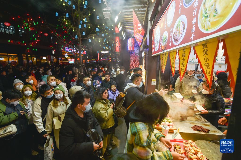 1月28日,游客在南京市夫子廟景區排隊購買(mǎi)特色美食。
