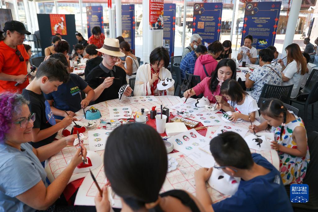 2月4日,在澳大利亞悉尼海事博物館,游客在“歡樂(lè )春節——走進(jìn)博物館過(guò)大年”文化體驗活動(dòng)中體驗戲曲臉譜繪畫(huà)。