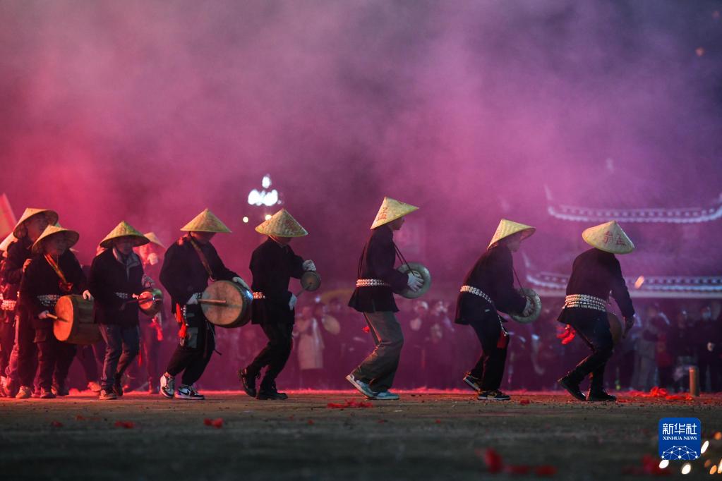 2月4日晚,人們在臺江縣參加苗族“舞龍噓花”活動(dòng)。