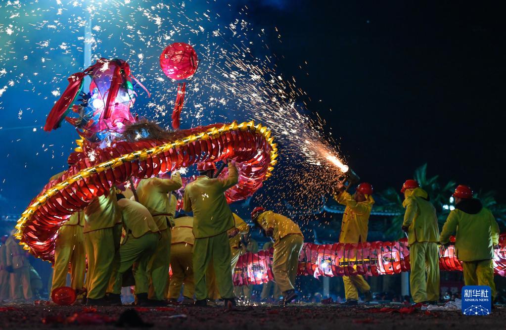 苗族“舞龍噓花”是當地人用土火藥和楠竹等制成噓花筒向舞動(dòng)的彩龍噴射所形成的絢麗景象。2021年,苗族“舞龍噓花”習俗入選國家級非物質(zhì)文化遺產(chǎn)名錄。