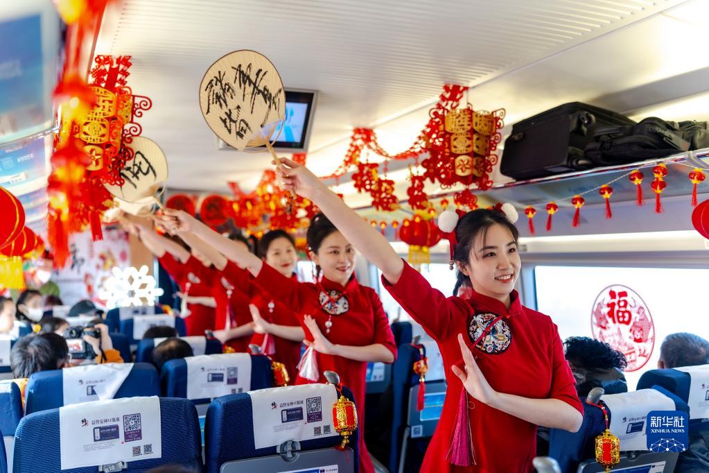 2月4日,一場(chǎng)以“玉兔納福盈如意,高鐵團圓慶元宵”為主題的高鐵燈會(huì )在G8039次列車(chē)上舉行。沈陽(yáng)客運段列車(chē)工作人員為旅客準備了舞獅和歌舞表演,并給旅客送上了煮好的元宵,為大家送去滿(mǎn)滿(mǎn)的節日祝福。