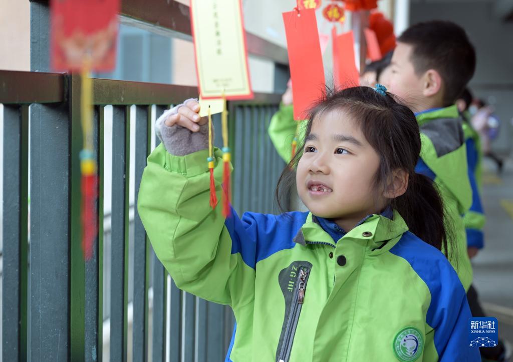 2月5日,合肥市夢(mèng)園小學(xué)教育集團天柱路學(xué)校學(xué)生在猜燈謎。