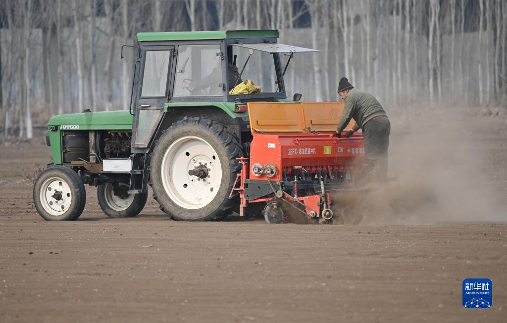 隨著(zhù)氣溫回升,在天津市西青區辛口鎮水高莊村,當地農戶(hù)搶抓農時(shí)進(jìn)行春小麥的機械化播種。