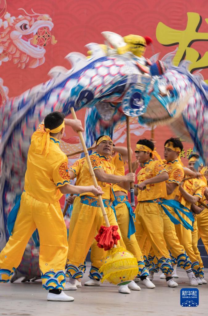 2月5日,龍舞隊在四川省瀘縣人民廣場(chǎng)表演。