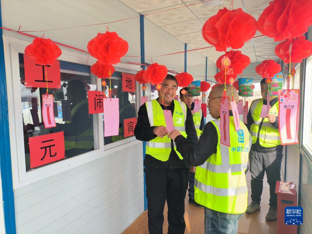 2月5日,在位于河北廊坊的中建三局北京公司某項目工地,職工在元宵節活動(dòng)上猜燈謎。