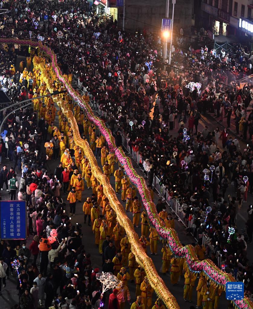 2月5日,游客在湖南省郴州市宜章縣一六鎮觀(guān)看舞龍表演。