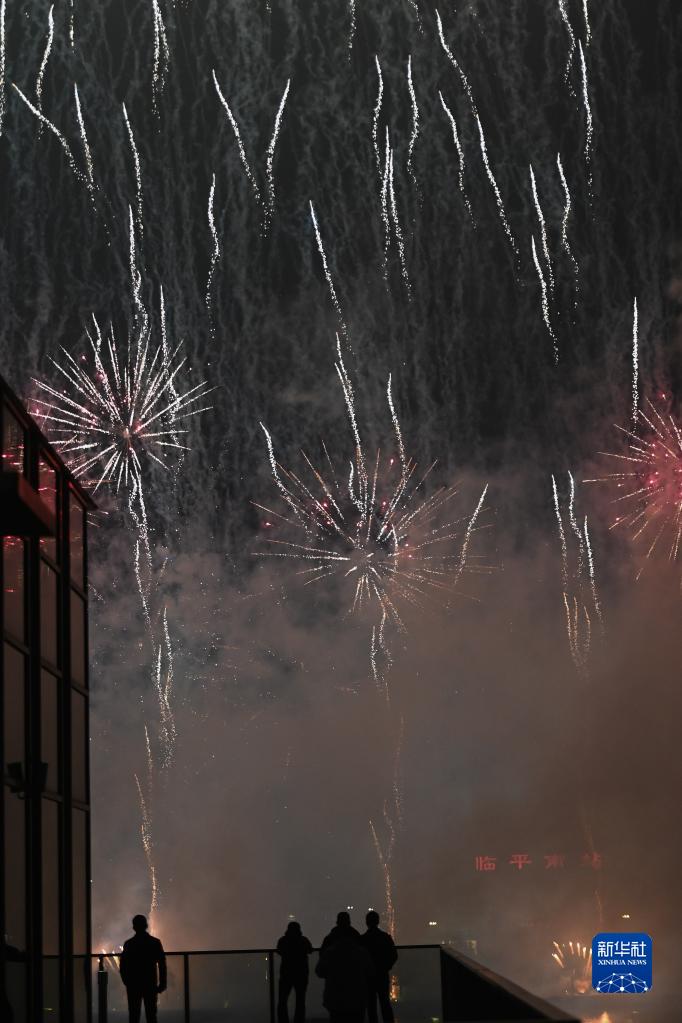 2月5日,市民在杭州市臨平區東湖公園觀(guān)看“迎亞運、慶元宵”煙花秀。