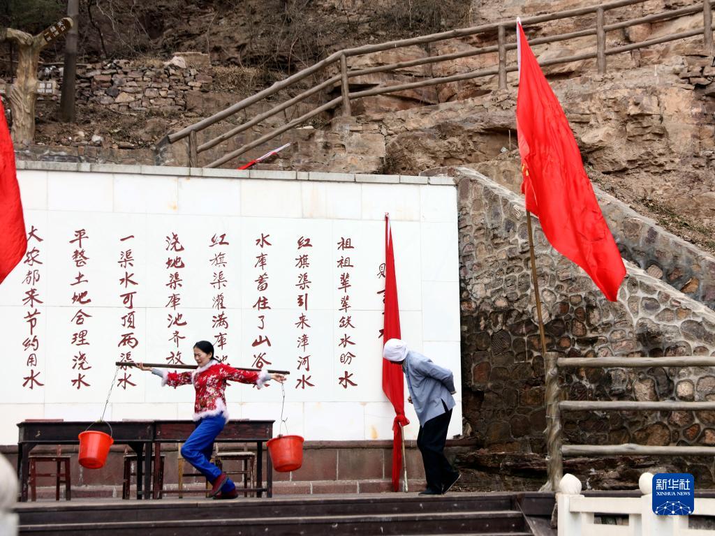 2月5日,演員在紅旗渠景區的情景演出中表演。