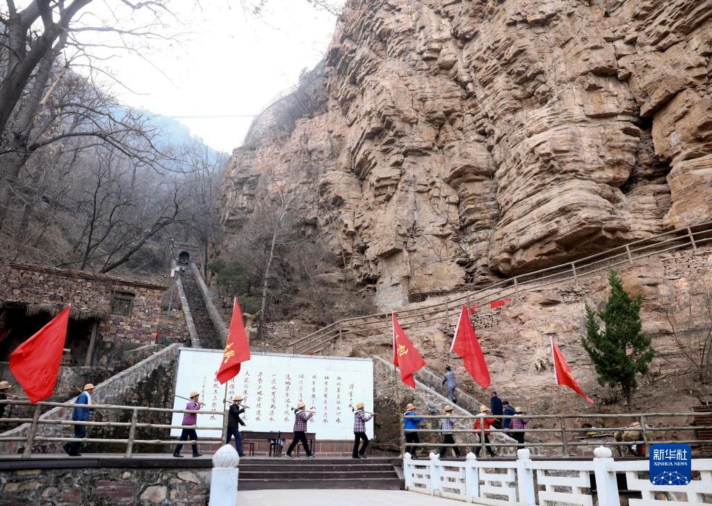 2月5日,演員在紅旗渠景區的情景演出中表演。