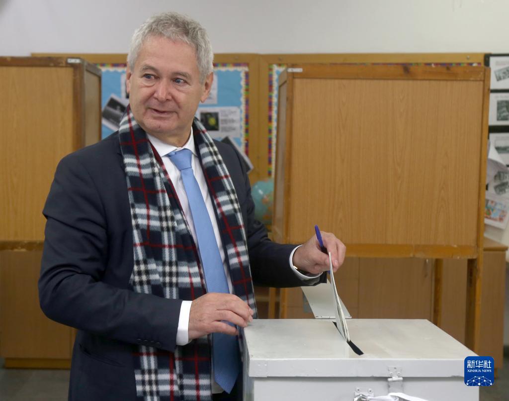 2月5日,反對黨勞動(dòng)人民進(jìn)步黨支持的獨立候選人馬夫羅揚尼斯在塞浦路斯首都尼科西亞的一個(gè)投票站投票。