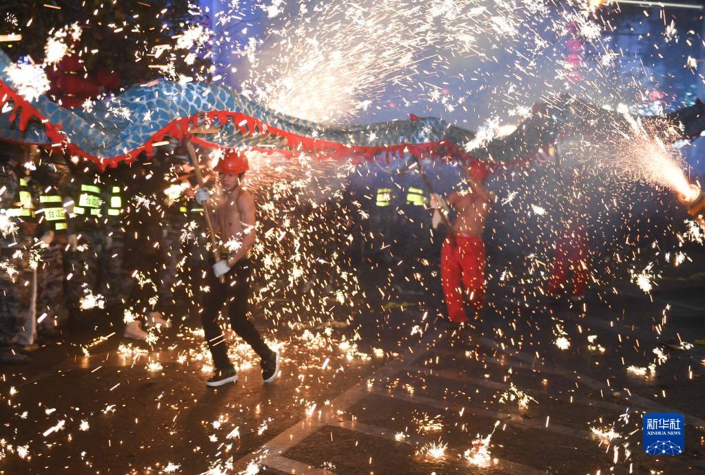 2月5日,人們在貴州省臺江縣參加苗族“舞龍噓花”活動(dòng)。