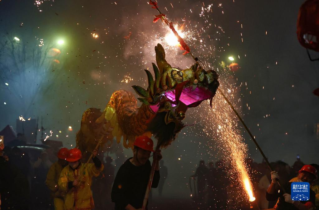 2月5日,人們在貴州省黔東南苗族侗族自治州丹寨縣參加“舞龍噓花”活動(dòng)。