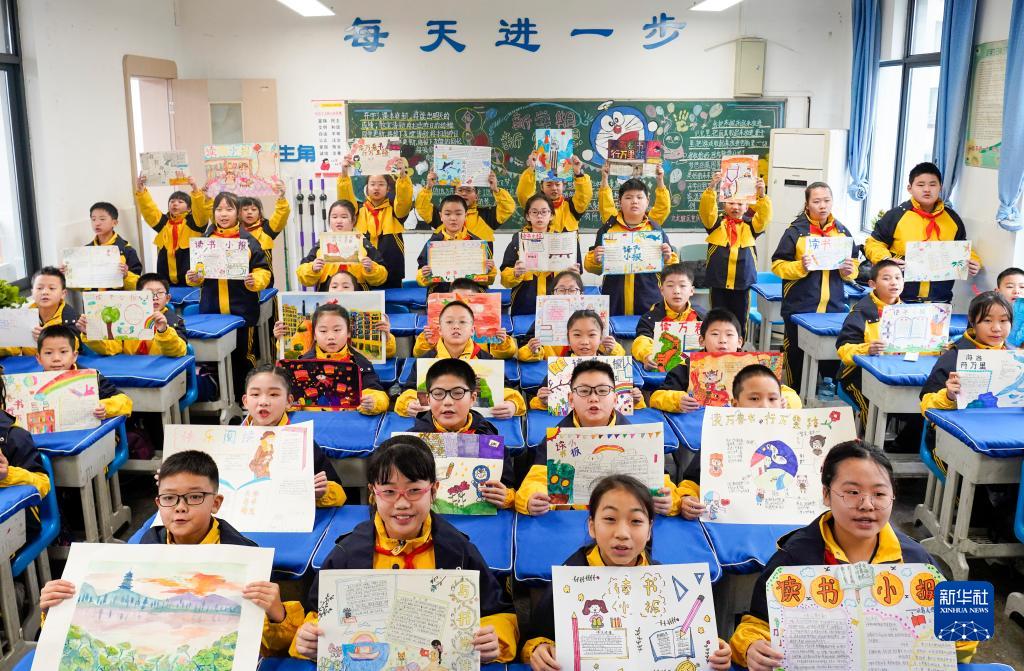2月6日,重慶市九龍坡區鐵路小學(xué)五年級2班的學(xué)生在開(kāi)學(xué)第一課上展示自己的手抄報和繪畫(huà)作品。