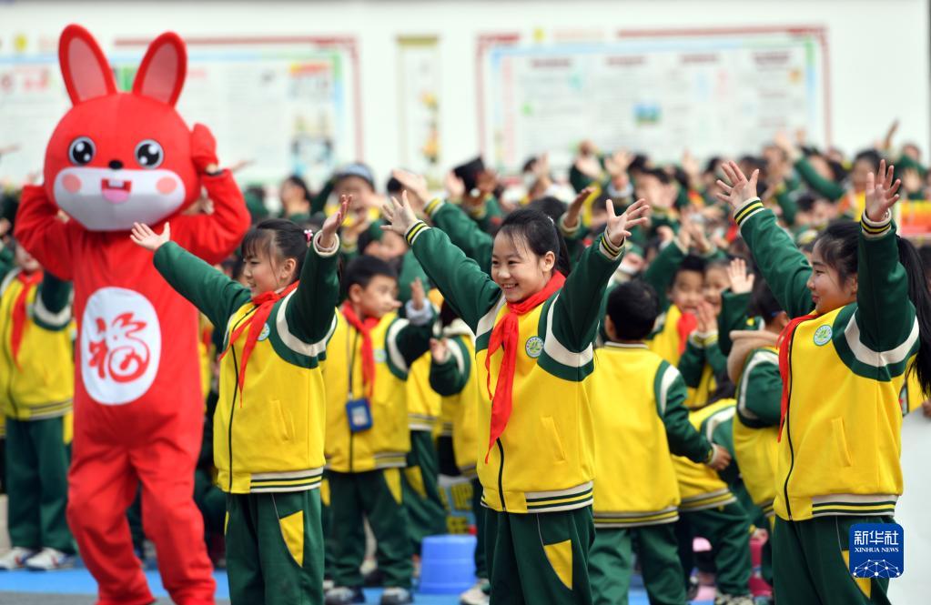 2月6日,在四川省南充市蓬安縣實(shí)驗小學(xué)開(kāi)學(xué)典禮上,學(xué)生跳起兔子舞喜迎新學(xué)期。