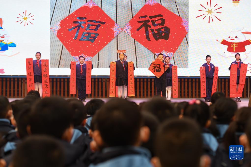 2月6日拍攝的西安市新城區后宰門(mén)小學(xué)開(kāi)學(xué)典禮現場(chǎng)。