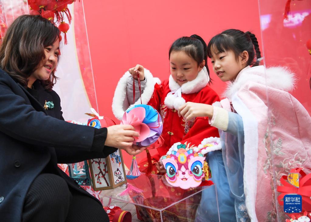 2月6日,在西安市新城區后宰門(mén)小學(xué),教師代菲和學(xué)生體驗漢服合影活動(dòng)。