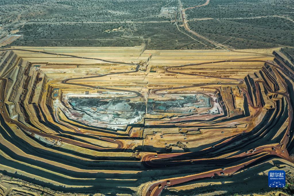 這是2月4日航拍的巴基斯坦塔爾煤田一區塊煤電一體化項目中的露天煤礦。
