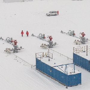 這是2月6日拍攝的塔里木油田西氣東輸第一站(無(wú)人機照片)。