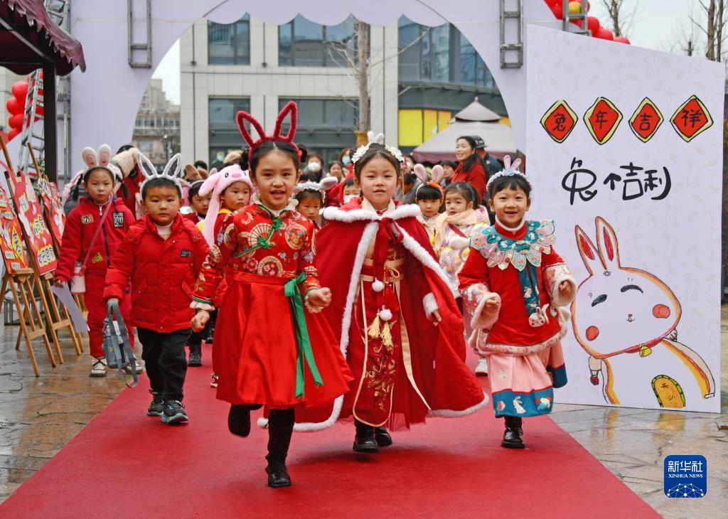 2月7日,在浙江省臺州市仙居縣中心幼兒園,孩子們穿著(zhù)漂亮的衣服走進(jìn)校園。