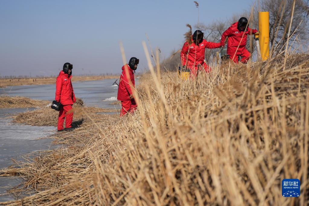 元宵節剛過(guò),工人迎寒風(fēng)、走冰面,在戶(hù)外對管線(xiàn)進(jìn)行巡查,保障供氣安全。