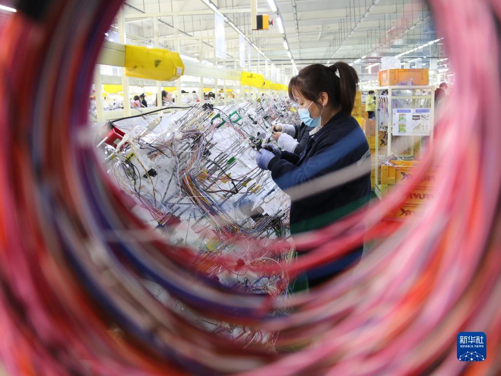 2月7日,工人在山東省菏澤市牡丹區王浩屯鎮一家企業(yè)加工車(chē)用線(xiàn)束。
