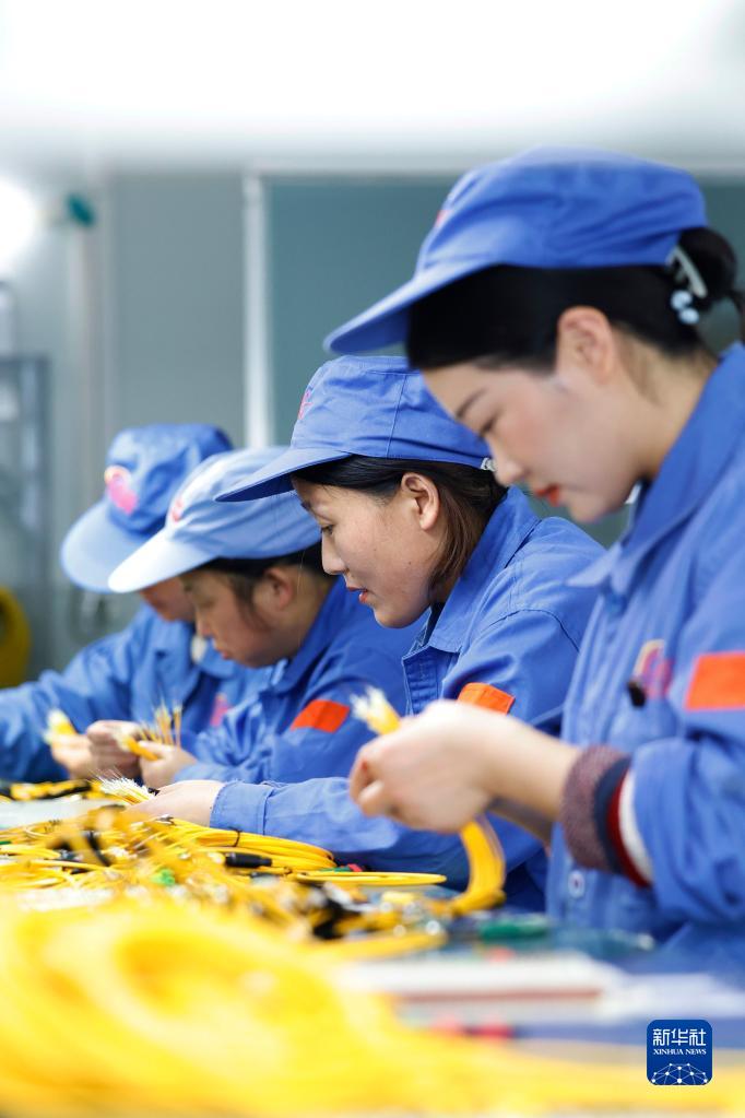 2月7日,在江蘇省宿遷市泗洪經(jīng)濟開(kāi)發(fā)區一家生產(chǎn)通信設備的企業(yè),工人在車(chē)間內忙碌。