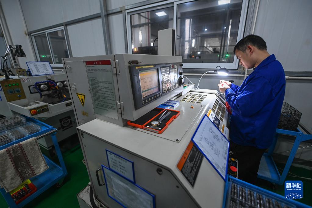 2月7日,在店口鎮的浙江潔利達暖通科技有限公司車(chē)間內,工作人員在自動(dòng)化機床上加工產(chǎn)品。