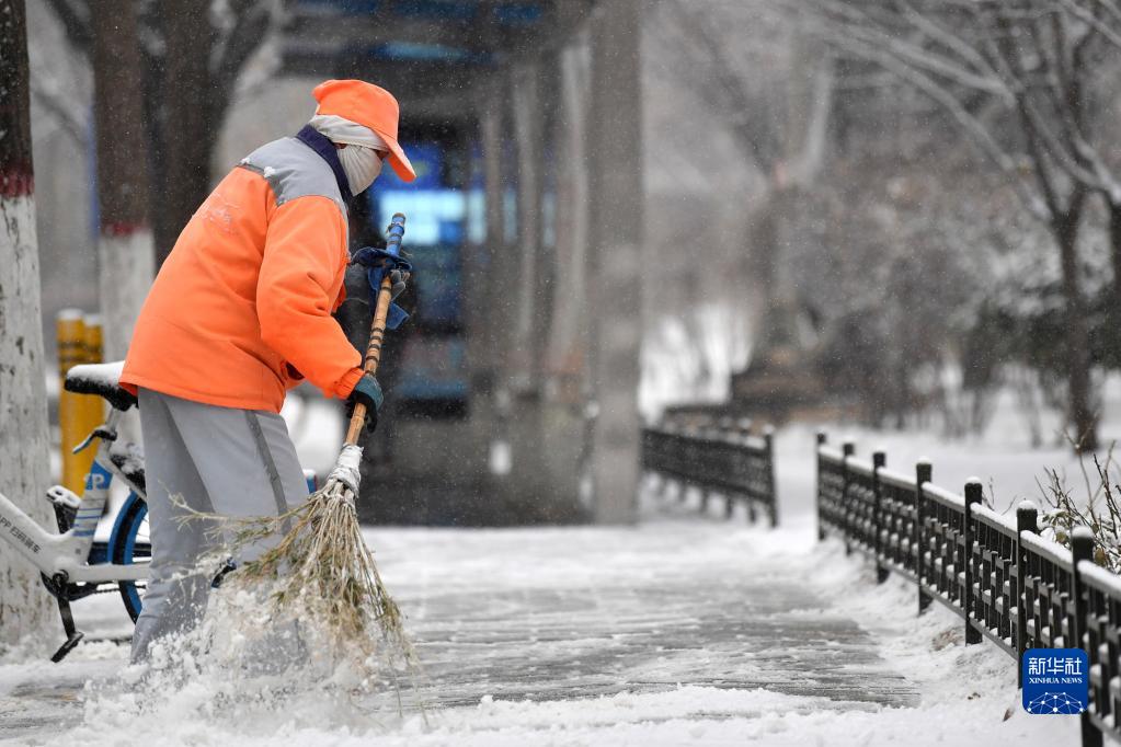 2月8日,環(huán)衛人員在蘭州黃河風(fēng)情線(xiàn)景區清掃人行道積雪。