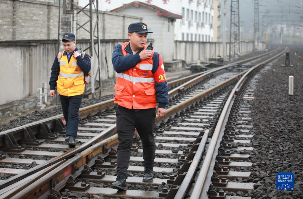 2月8日,貴陽(yáng)電務(wù)段工作人員攜帶著(zhù)北斗防護系統設備前往作業(yè)地點(diǎn)。