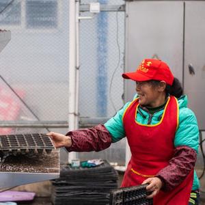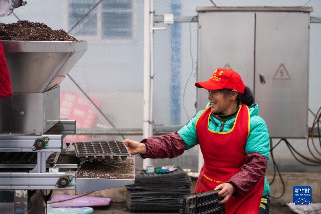2月8日,在鼎城區國家現代農業(yè)產(chǎn)業(yè)園一處蔬菜育苗基地,工作人員在操作全自動(dòng)播種機。