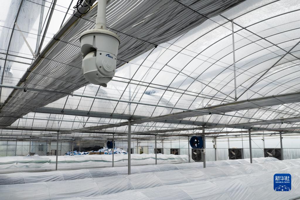 2月8日,在鼎城區國家現代農業(yè)產(chǎn)業(yè)園一處蔬菜育苗基地,智能攝像設備在記錄蔬菜生長(cháng)情況(無(wú)人機照片)。