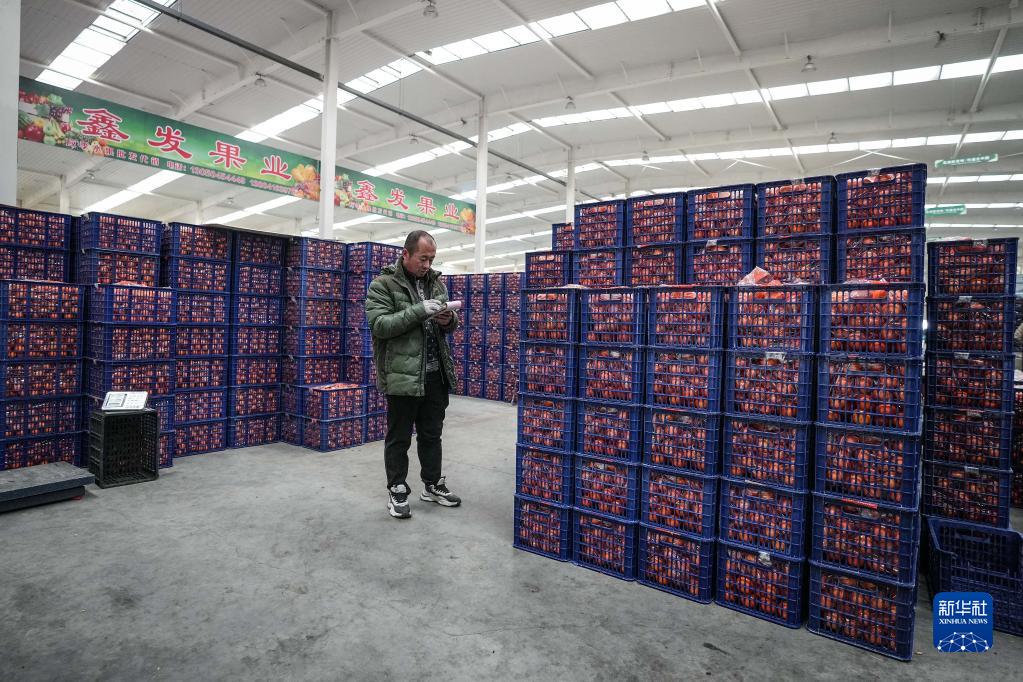 2月7日,商戶(hù)在東北新發(fā)地農產(chǎn)品供應鏈中心內清點(diǎn)貨品。
