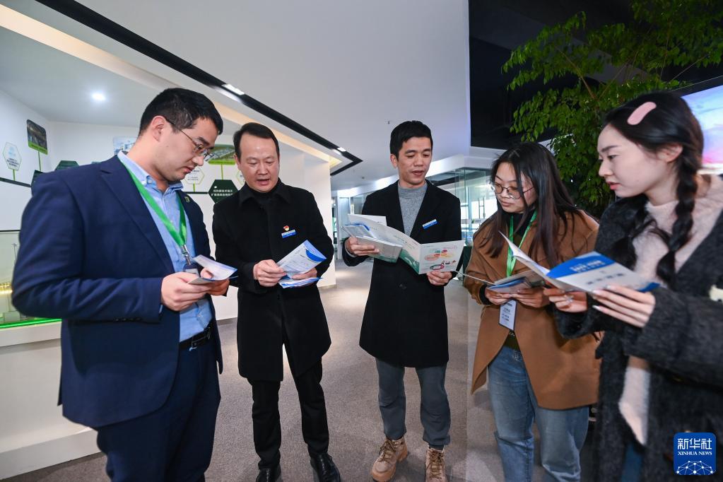 2月8日,湖州市吳興區中小微企業(yè)一站式服務(wù)平臺的值班代辦員(左二、左三)來(lái)到一家高新企業(yè),開(kāi)展“上門(mén)辦”服務(wù),給企業(yè)員工提供人才補貼政策的解讀及登記辦理。